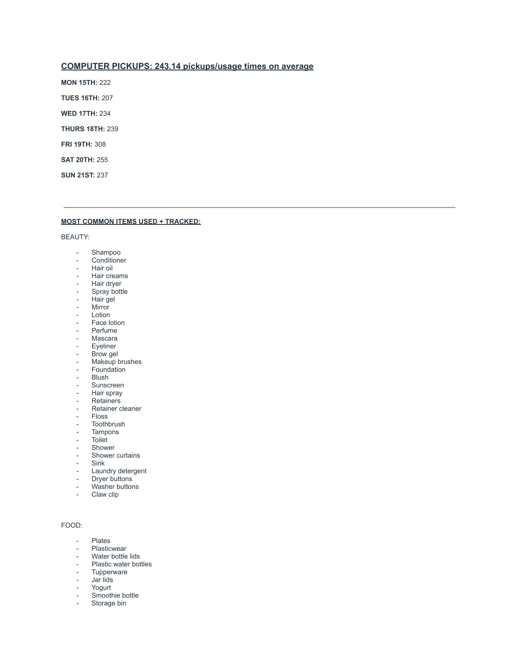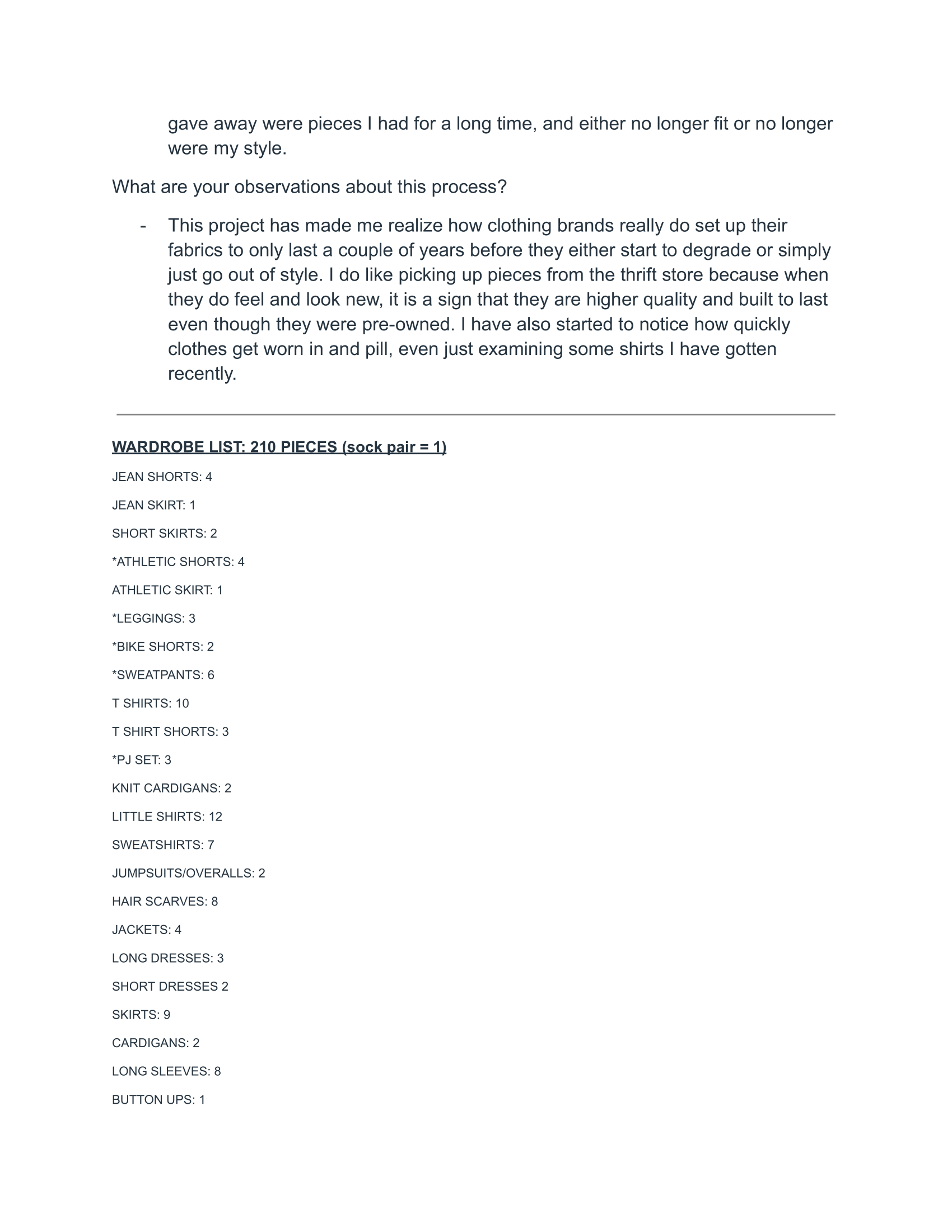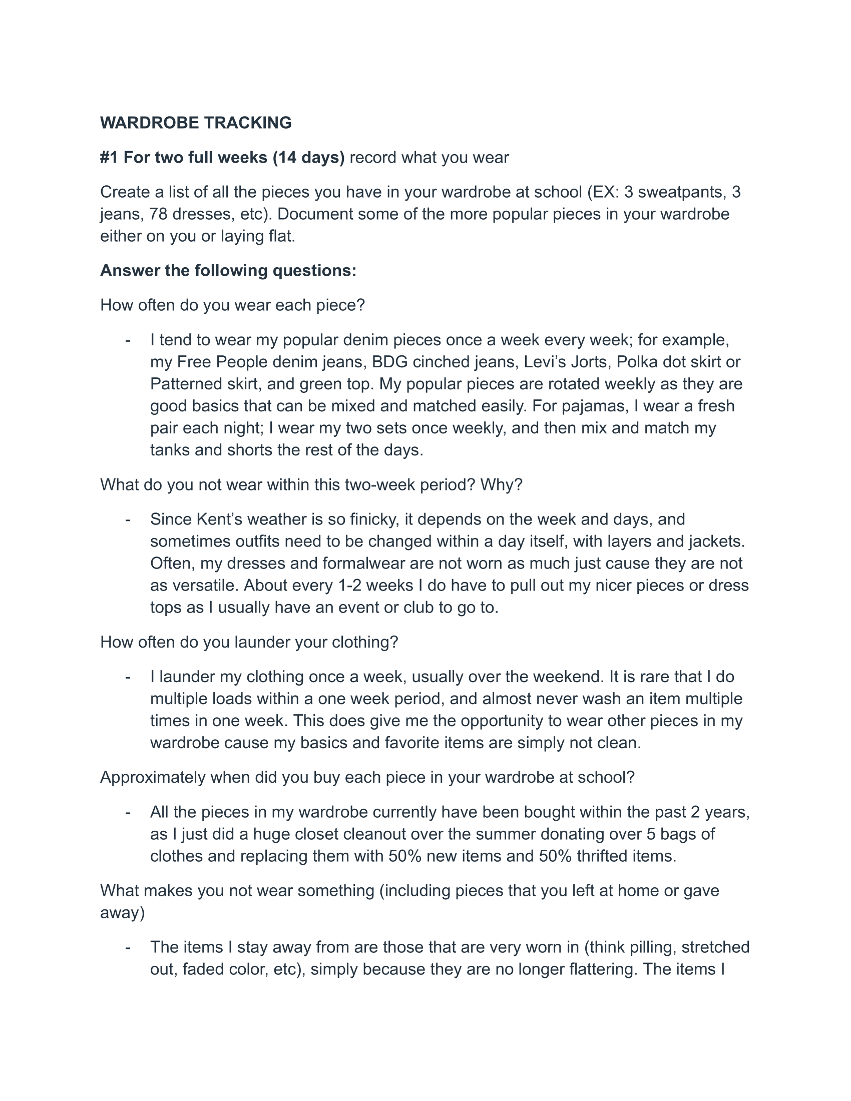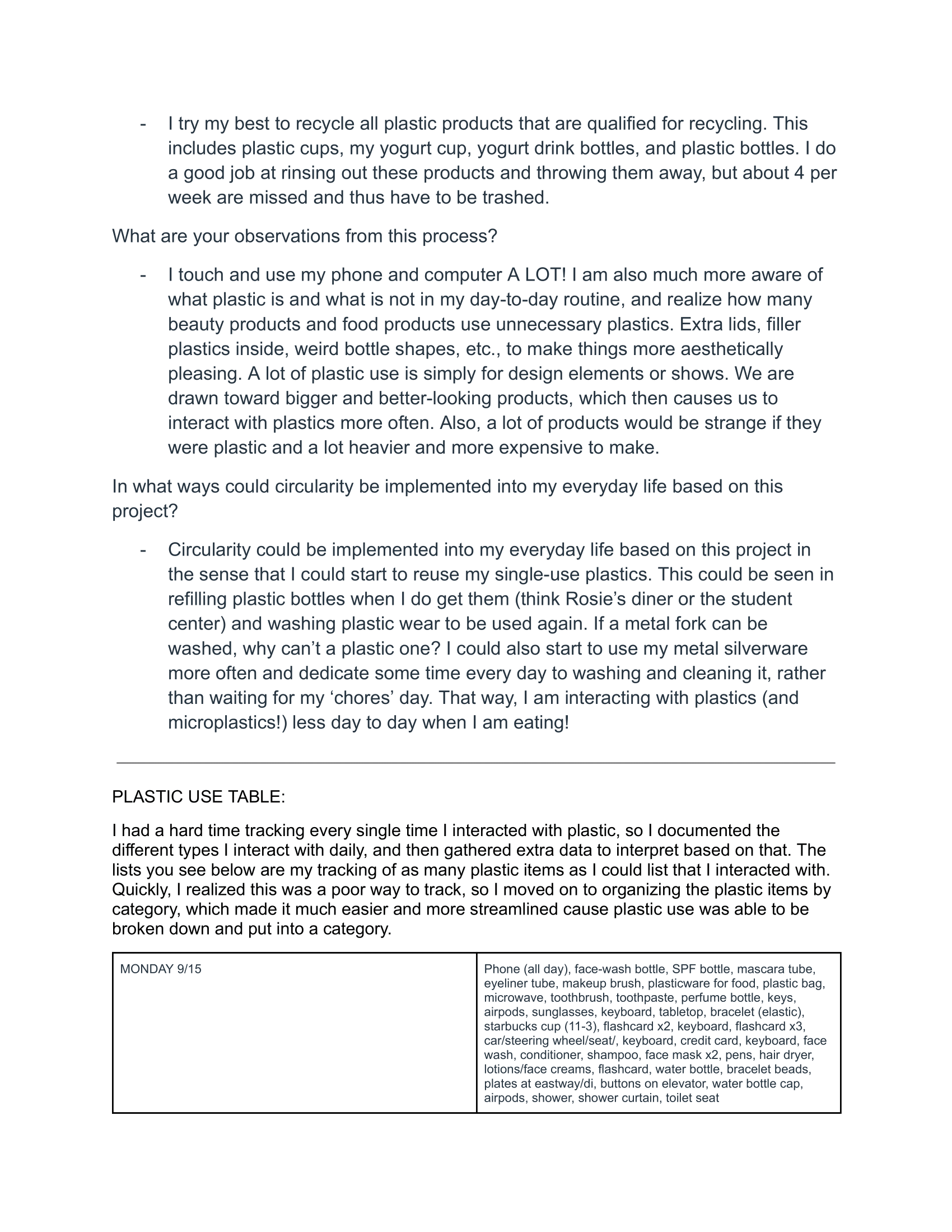 habits project: plastic use tracking and wardrobe study under professor ariane robinson