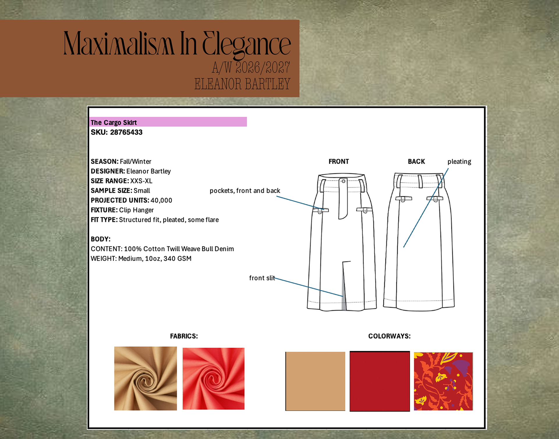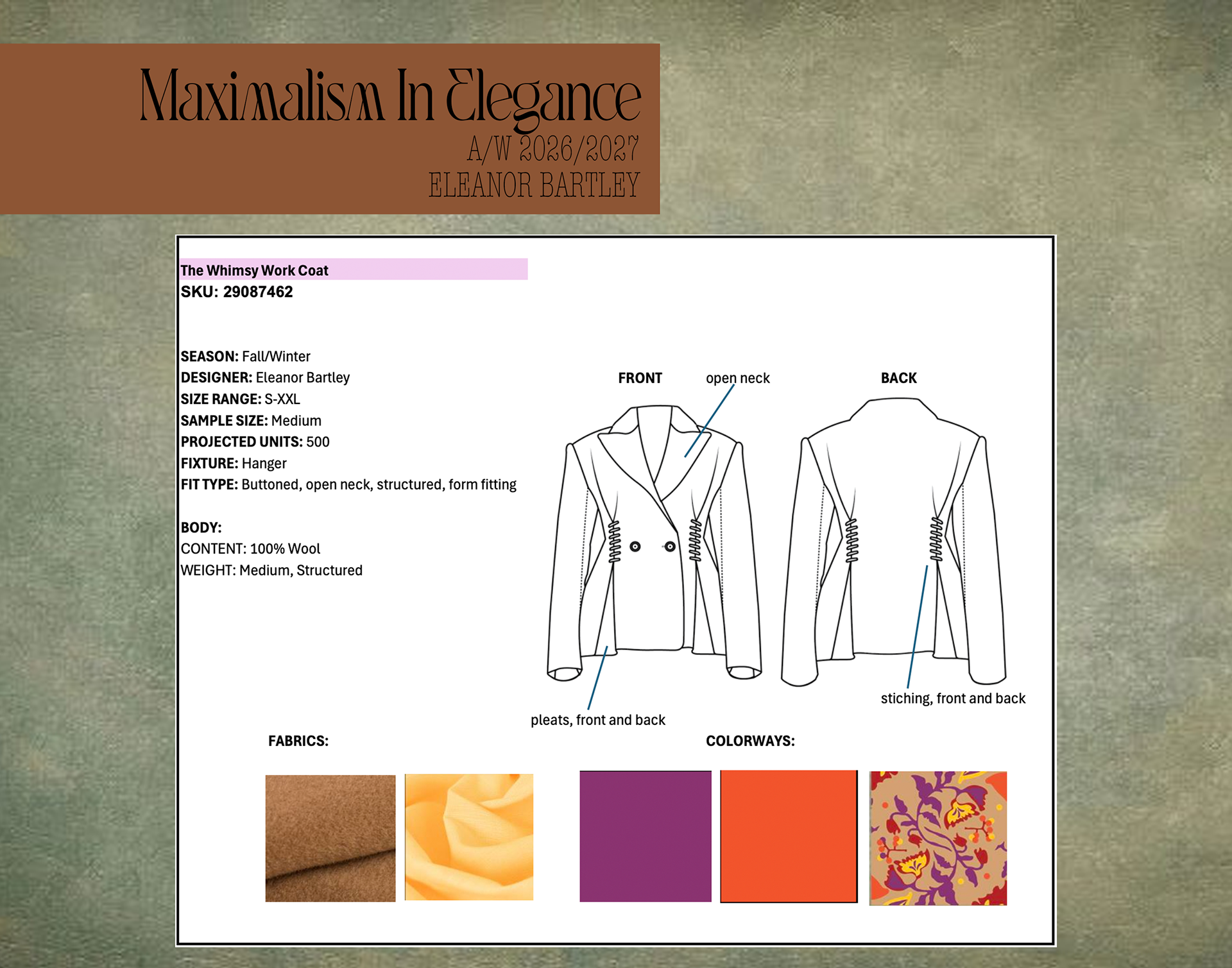 intro to fashion tech project 2, pattern making with WGSN under professor katelynn weger